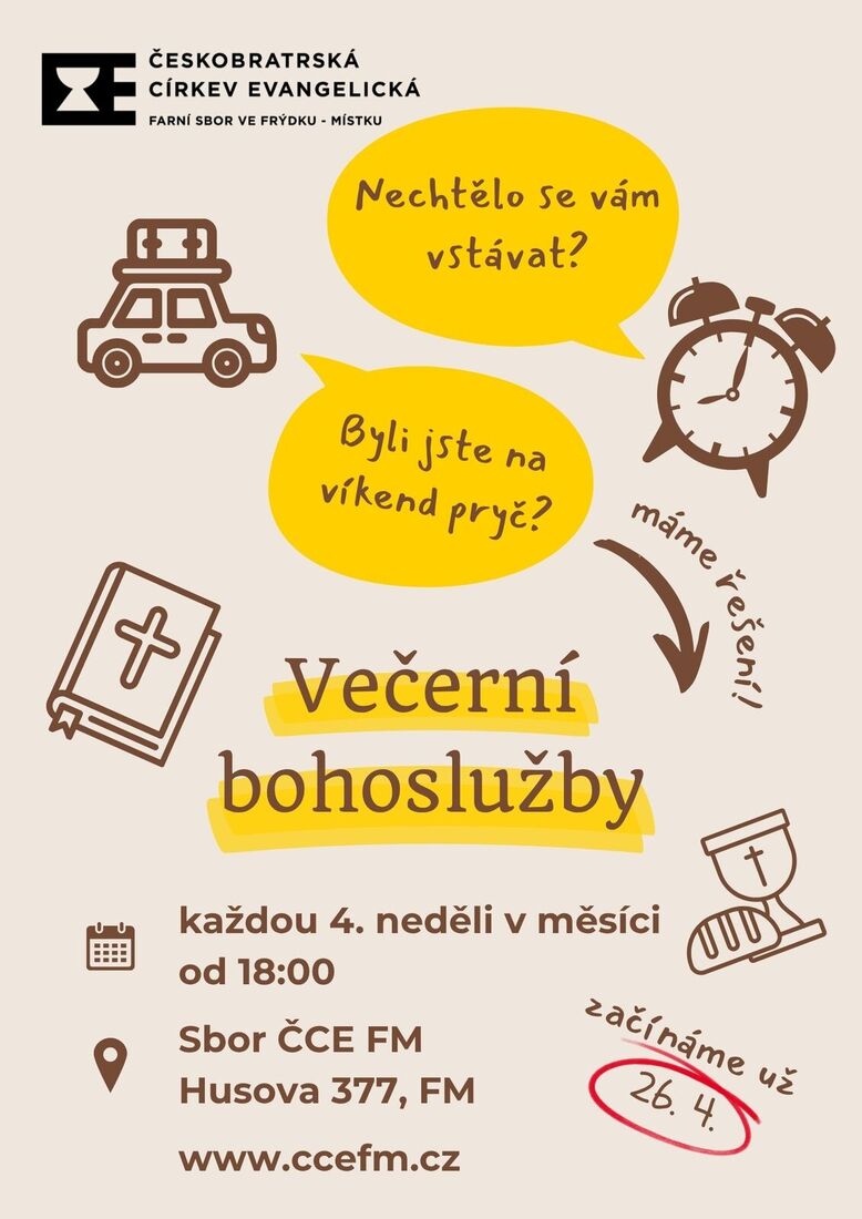 13. dubna 2026 - Novinka! Večerní bohoslužba