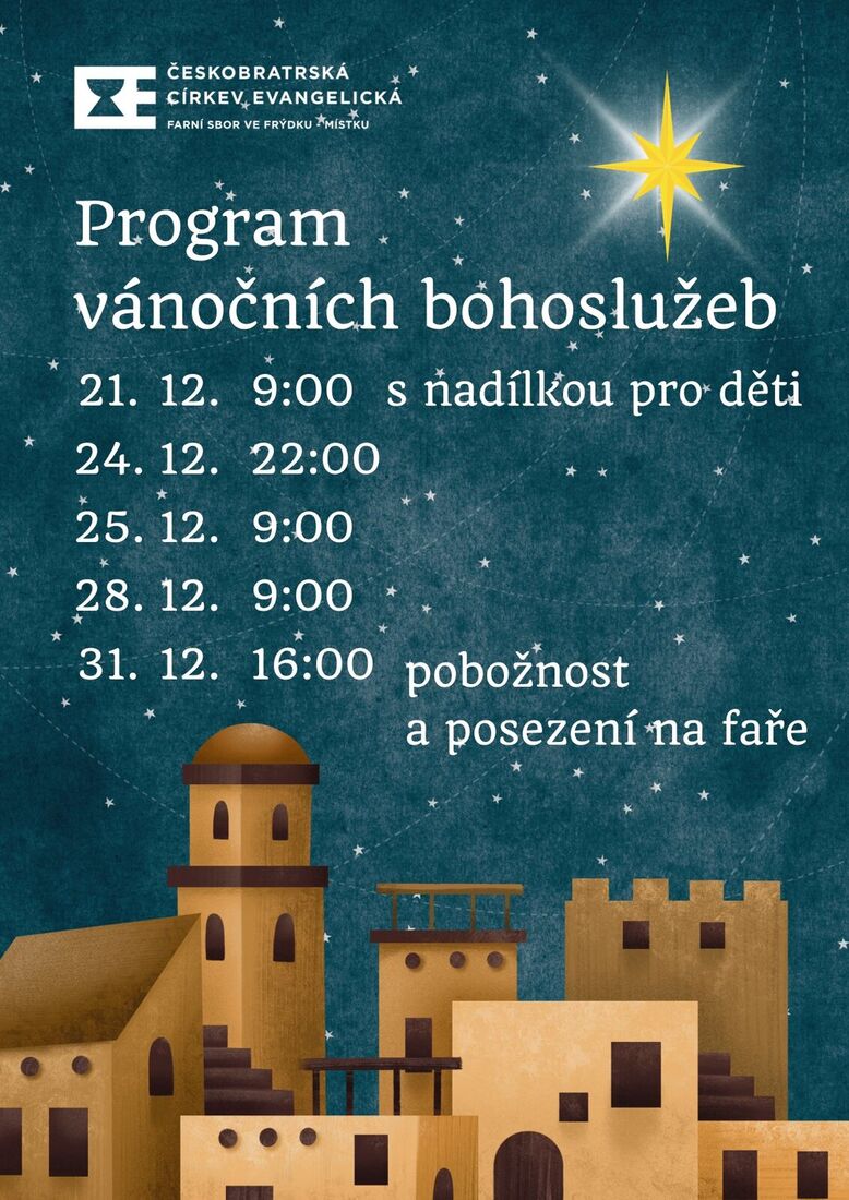V závěru adventní doby a během Vánoc vás zveme na uvedená setkání.
